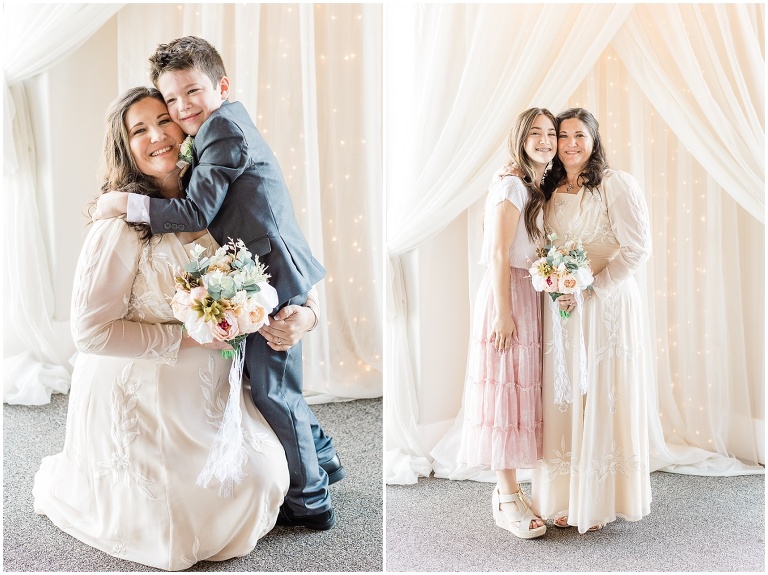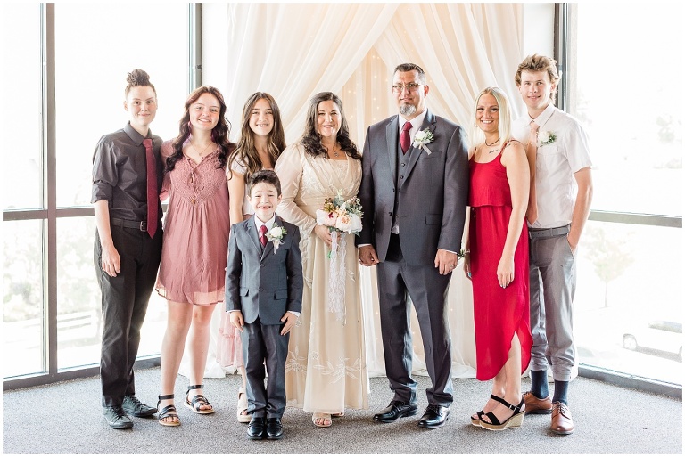 I had so much fun photographing this intimate wedding at Bella Vista! Allison and Ian are so in love, and it was a joy to witness! The wedding ceremony was a beautiful joining of two hearts and two families. Both Allison and Ian have wonderful kids that they are bringing into the marriage, and it was wonderful to see everyone’s support of their new union. During the ceremony, the entire new family unit stood up front and took in the officiant’s words. Allison and Ian held hands the entire time, and kept sneaking looks at each other. They are literally sooo cute!!