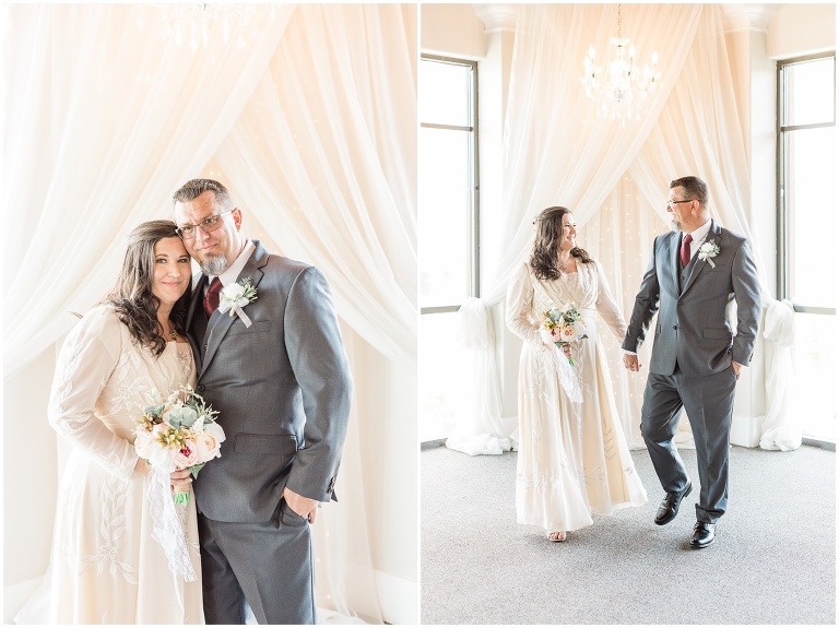 After the ceremony, their family and friends had a nice little brunch with waffles and all the toppings – fruit, whipped cream, chocolate sauce, you name it! If you don’t know, breakfast is my absolute favorite meal, so I love that they chose a breakfast option! Such a unique and fun food to feed your guests! While the guests were dining, I had my time alone with the sweet couple. We talked about their honeymoon to Florida, and how excited they were to have some time to just relax! Planning a wedding can be stressful, but it’s always nice to have the honeymoon to look forward to!