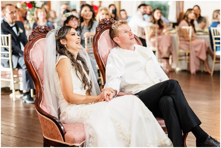 Kim and Chris held a ring ceremony out in the Castle’s courtyard. Kim’s father officiated, and he delivered a beautiful speech! He touched on the importance of treasuring your spouse and making sure they always feel your love. Kim and Chris are so good at that! They are so sweet and loving with each other! When we were doing their husband and wife portraits, Chris kept complimenting Kim and telling her how beautiful she was.