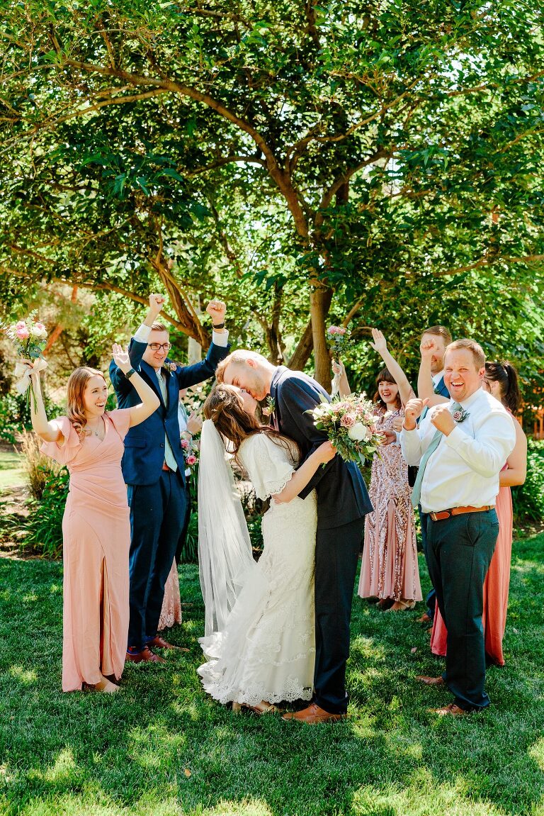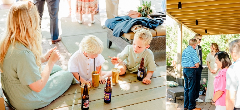 Both of their families were super kind and easy going. A funny moment from the day was during the big family picture when Kai’s nephew decided he’d rather roar like a dinosaur instead of smile. Everyone busted up laughing and it was so funny! The reception portion of the day was held at Kai’s family home, and it was the perfect spot for a laidback celebration. Emily is not originally from Utah, so her and Kai are celebrating again this coming weekend up in Oregon. Because of this, their backyard reception did not include any of the typical wedding festivities. It did, however, include a bunch of yummy desserts and a super fun ice cream float vendor!