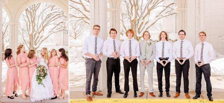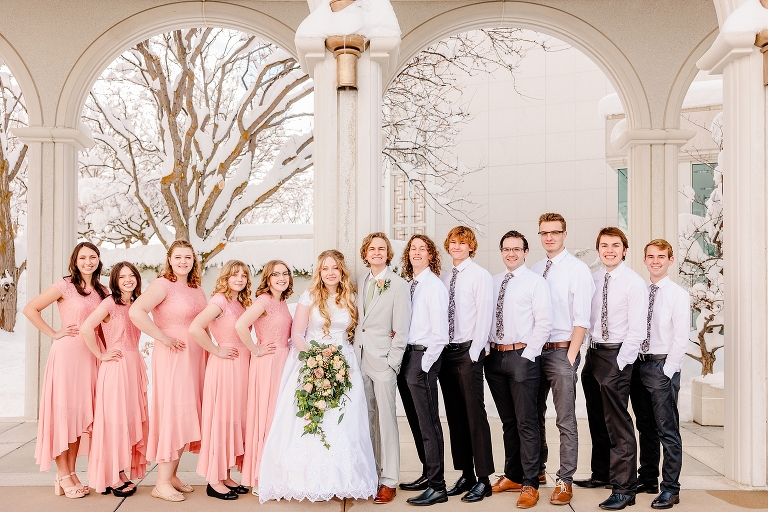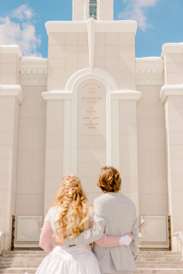 Katie + Christian had a beautiful wedding last week! They were sealed at the Bountiful temple, and then had a lovely, intimate greenhouse wedding reception at Le Jardin. Their spring wedding was not exactly springy, as Utah got hit with a big snow storm the day before their wedding. The sun still came out, and we made the best of all the snow at the Bountiful temple + the greenhouse vibes brought in some much needed life to their photos!