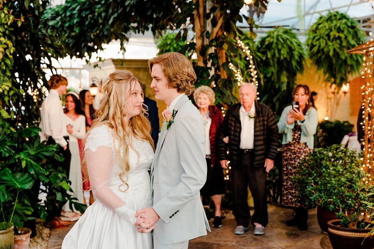 One of my favorite parts of the evening greenhouse wedding reception was when Katie and Christian exchanged vows infront of all their guests. Vows aren’t super traditional with LDS temple weddings, but I LOVE vows, and so this was beautiful to witness! Their vows to each other were sweet and loving, and it really showed just how much they care for each other!
