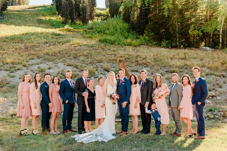 PHOTOGRAPHY: Utah Wedding Photographer | VENUE: Moonbeam Lodge Wedding at Solitude | DRESS: Madeline Gardner, Morilee | SUIT: The Black Tux | CAKE & CATERING: Solitude Mountain Resort | COOKIES: Crumbl | HAIR/MUA: Create on Location | BRIDESMAID’S DRESSES: Birdy Grey | FLORIST: The English Rose Floral