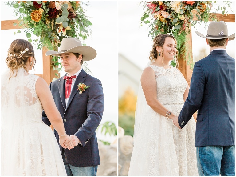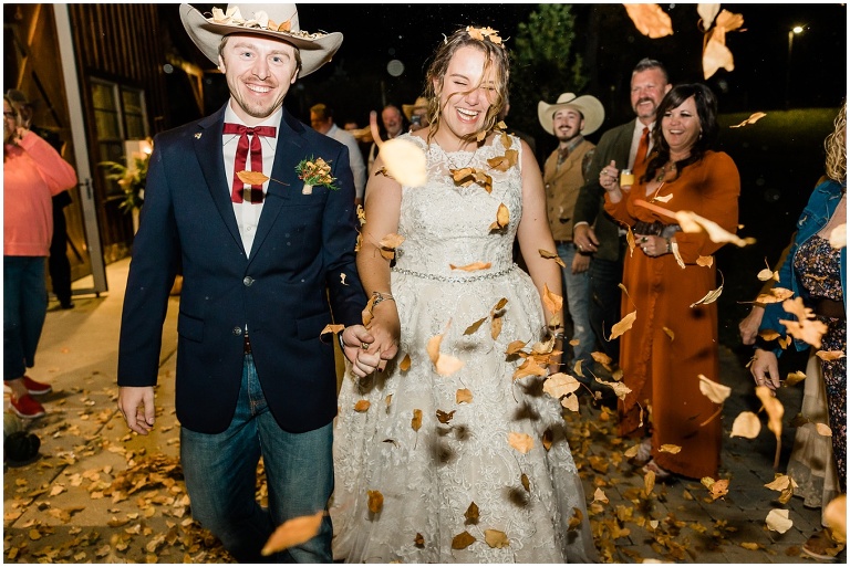 One of my favorite memories of the day, is when Sam was getting ready and peeked her head out the door to see everything set up. She got all teary eyed and said “It’s so pretty!!” and I think that moment is when everything really sunk in for her. My two kids got to walk down the aisle and throw leaves – well one of my kids did – the other one got a little side tracked haha. But what can you expect from an almost two year old?! Sam was the most beautiful bride, being escorted out by her dad.