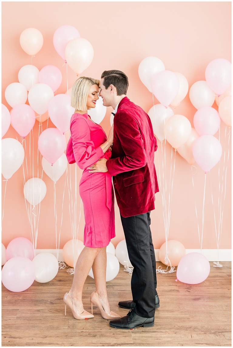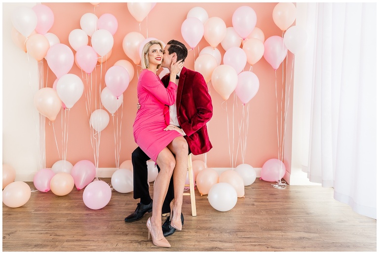 All things pink, girly, and love related are my jam! As a Utah wedding photographer with “heart” literally in my last name, I couldn’t love Valentine’s day more! I had an idea to do a really cute, pink valentines themed shoot, and Natalie and Hunter were the perfect duo to make my dreams come true! I wanted the shoot to be really fun, vibrant, and a different vibe than what I normally shoot! Most of my sessions take place outdoors in natural light, but I wanted to shoot with pink walls for this session. Enter, a studio! I booked a studio that was doing a super cute set up for valentines day with balloons and rose petals, so it was perfect!