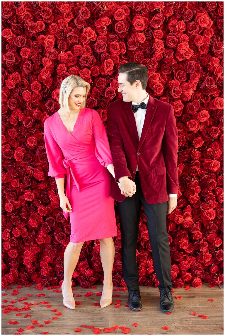 I also loved the rose wall – it felt very “Bachelor”! Natalie and Hunter were awesome at throwing those rose petals and creating a picture perfect romantic scene! It was just so fun being creative, and shooting this pink valentines session! I hope you have fun looking at all these pink photos! Scroll through, and enjoy! And then go tell someone how much you love them – keep spreading the love vibes!