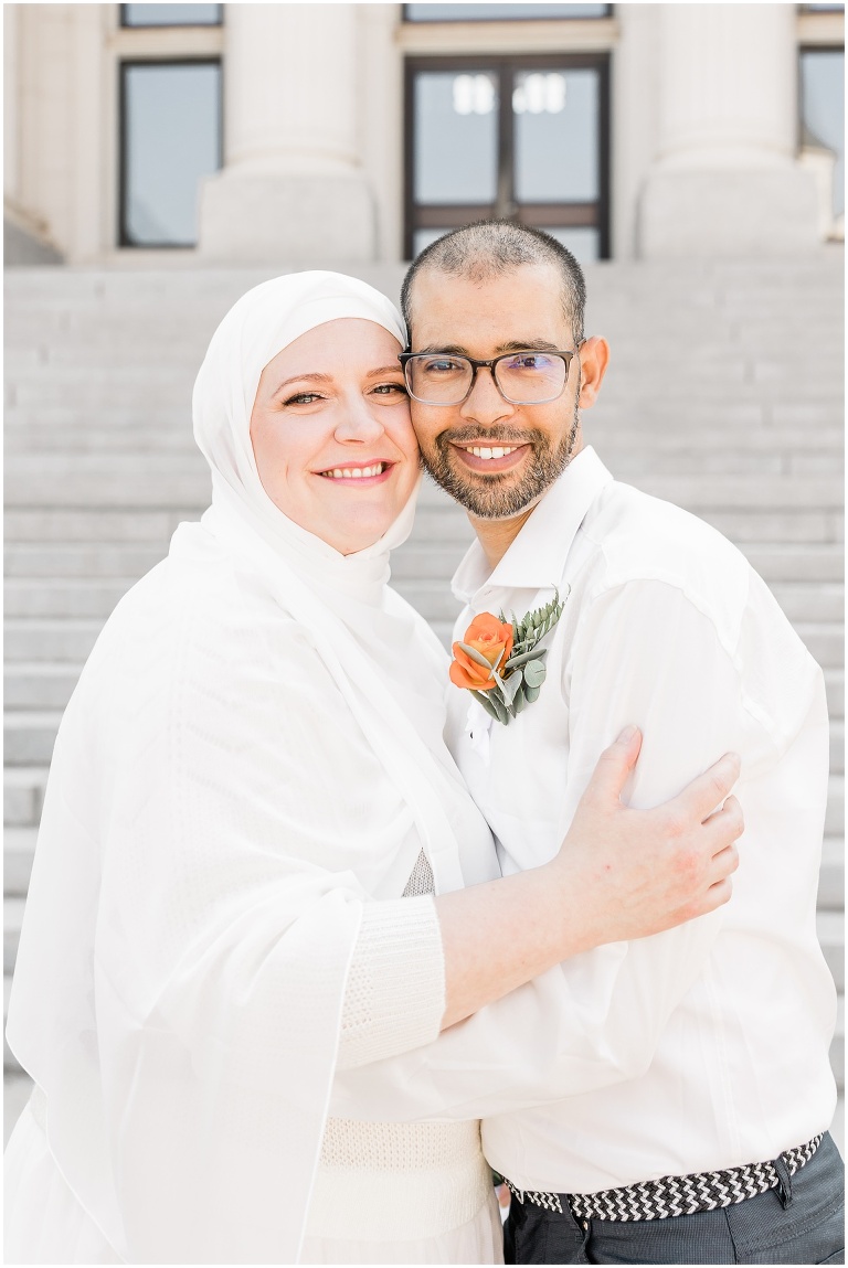 Mary and Samir became husband and wife last week! Samir is from Morocco, and he flew across the world to marry Mary. Their Provo Courthouse elopement was so sweet and simple. They were surrounded by a small group of friends and family, and in front of them, they pledged their love for each other.