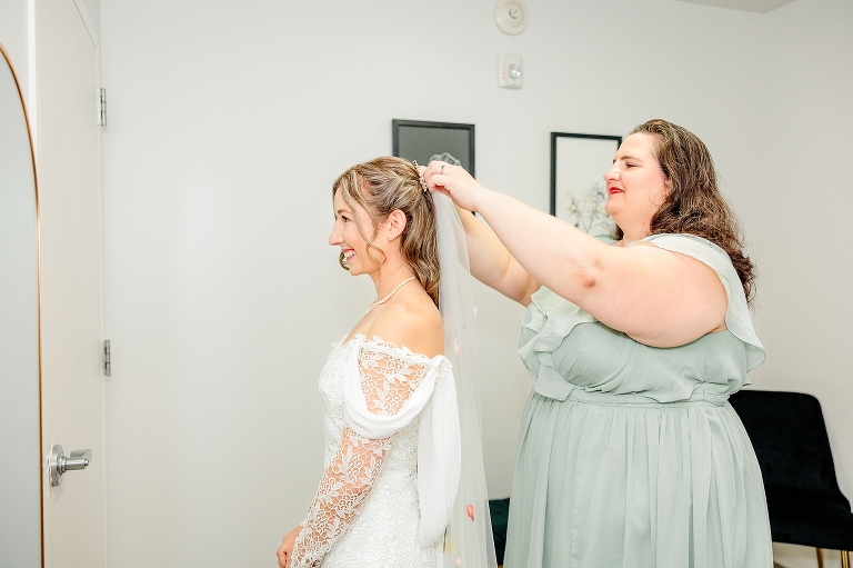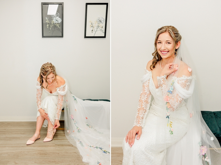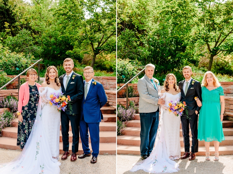 Ashley looked absolutely stunning in a beautiful vintage dress! She found the dress on a whim, thrift shopping while both sets of parents were in town visiting. The lace dress was so unique and fit her like a glove. Add in a floral embroidered veil, and Ashley was a perfect spring bride! We found so many beautiful spots for photos at their Red Butte Orangerie Wedding. I couldn’t believe how many things were blooming!