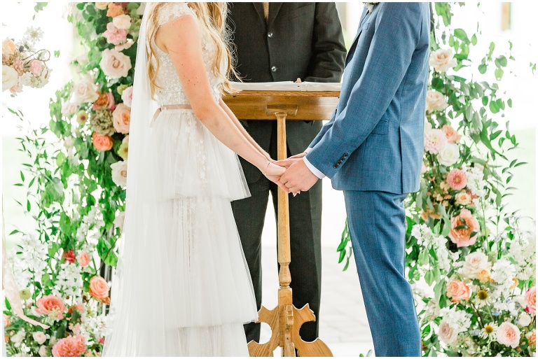 Another favorite moment from their wedding day was when Chris saved Emily’s life. No, I’m not joking! As we were taking their portraits in front of the beautiful floral arch, a big gust of wind picked up and caused the arch to fall forward. Chris ran over and caught the arch just in the nick of time, stopping it from hitting Emily and knocking her down! It all happened in a split second, but Chris’ quick thinking saved the day!