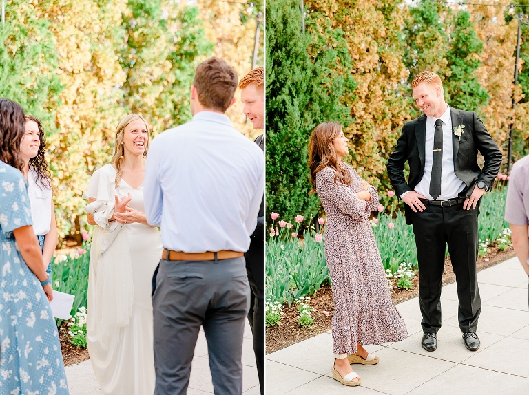I am so excited to share this Draper Temple and Thanksgiving Point wedding with you today! Lyndsi and Eric were sealed together, and then had the most beautiful ring ceremony surrounded by family and friends in the Loggia Gardens. These two have so much support and love from their families! I love how when they exited the temple everyone kept screaming for Eric to dip and kiss Lyndsi. Lyndsi’s brother walked her down the aisle, and it was an emotional beginning to the ceremony. Everyone was thinking about and missing Lyndsi’s late father.