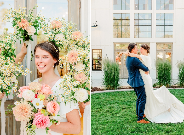 The Walker Farms wedding reception portion of the day was so fun! Ashley’s family worked together to create a beautiful balloon installation. The farmhouse tables were adorned with beautiful bud vases, and my favorite part – huge, beautiful prints of their formal session were displayed throughout the space! I always love seeing my work printed and displayed! That is the whole point of photos – to display them!